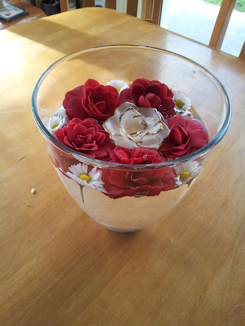 It was a wedding present. Now the old vase has been turned into a new beautiful dinning centre piece.
