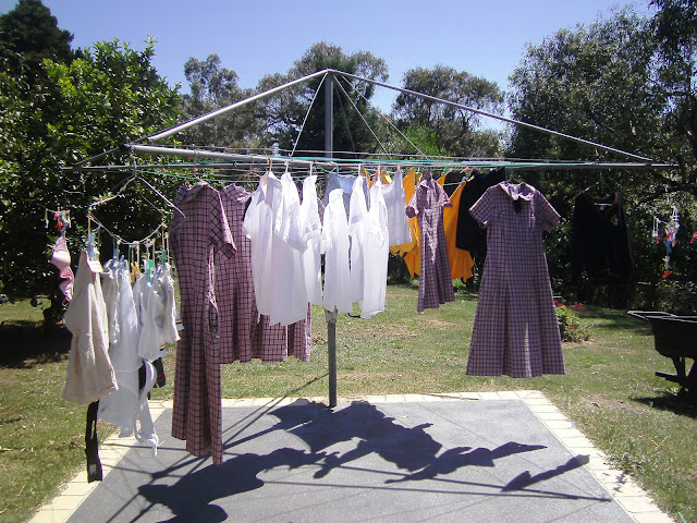 Here is a simple idea to avoid ironing the school dresses (uniforms) and shirts. Hang them directly onto coat hangers. The sun and wind irons out the creases for you while they flap around on the clothes line.