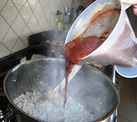 3. In a separate bowl mix tomato puree, wine, cinnamon, salt and pepper. Pour mixture over the mince, stir and simmer.