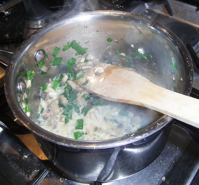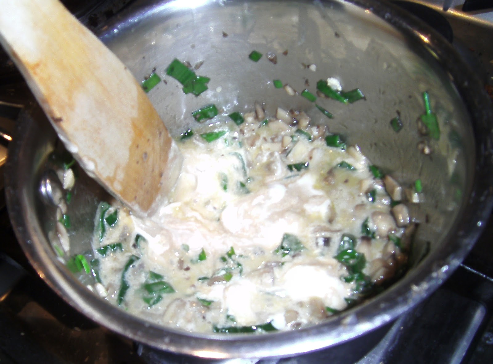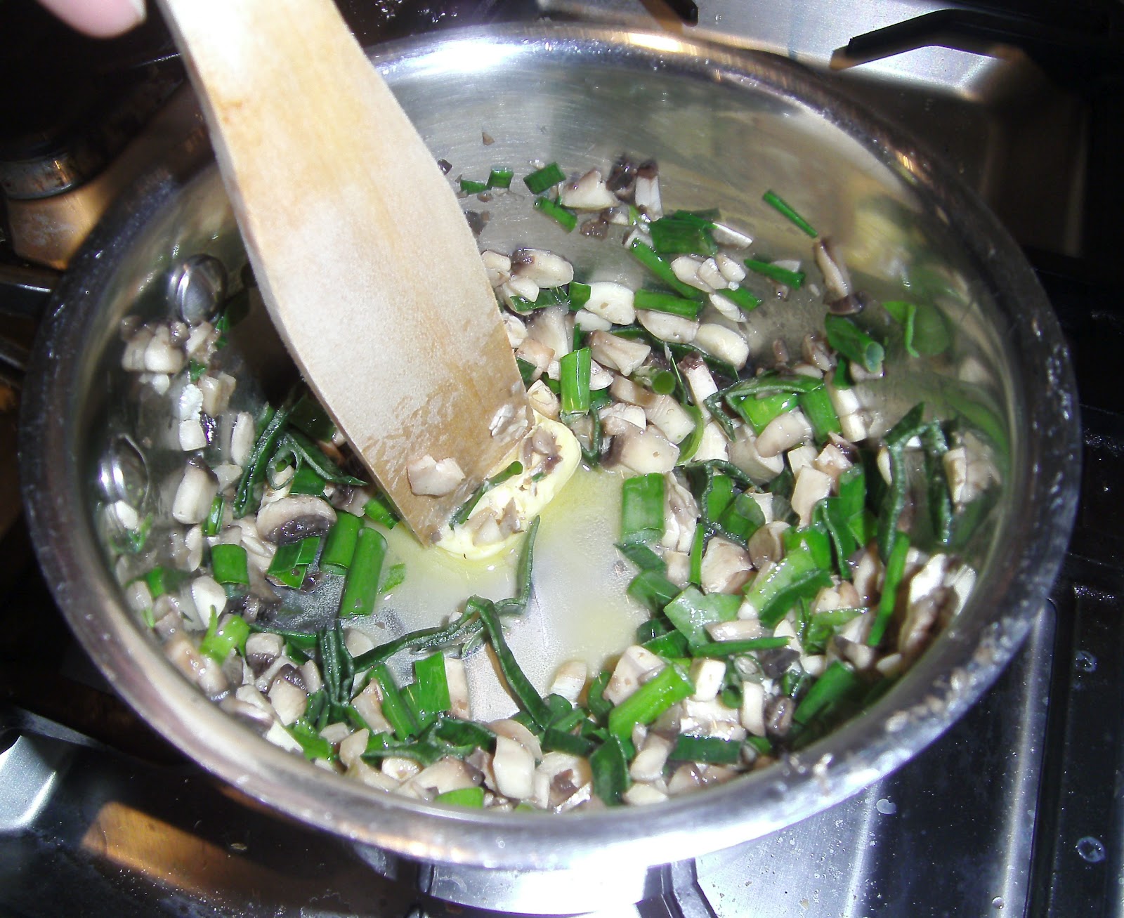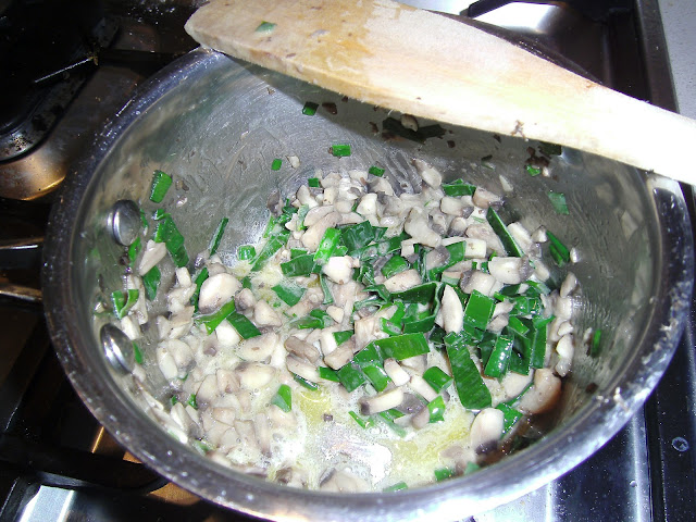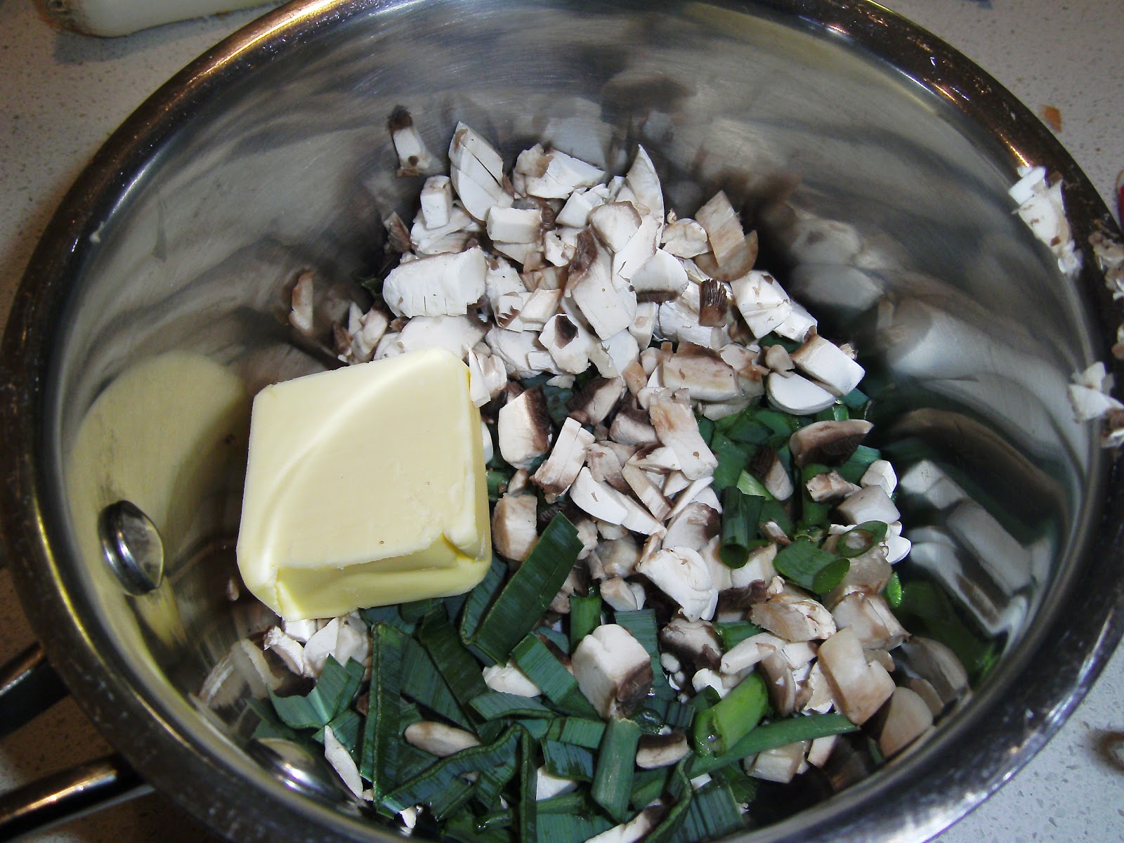 In a saucepan place the mushrooms (and chives, leek or shallots if also using).