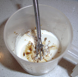 In a coffee cup, small jug or bowl add the cream and mix in the Worcestershire sauce ~ set aside.
