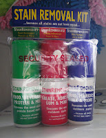 Finding these online, was a problem (googling I mean) and this is the only link I could find. Here. This is also the OLD brand they use to sell at Woolworths as they were easy to use and packaged well (with a small drain hole or lift up flap to pour onto stain).The pack that I recently purchased (from Woolworths – above and left pictures) have very basic labelling, small print and are pump spray bottles. After using a few times the spray mechanism is USELESS, as they stop working and I am forever removing the pump part and pouring directly onto the stains, while trying not to waist too much product.